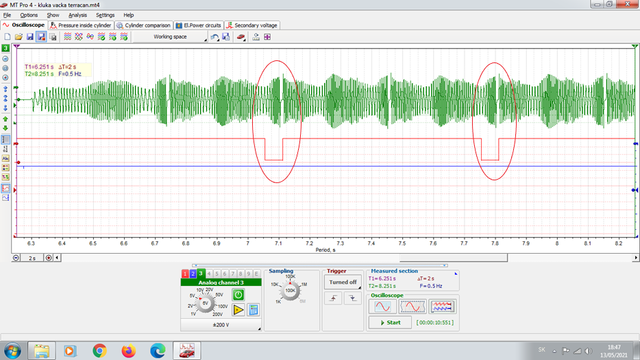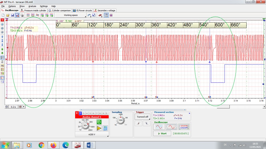 Hyundai Terracan CRDi – kontrola synchronizácie signálov kľuka/vačka